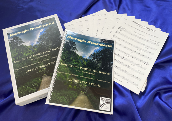 2x Viol.1 / 2x Viol.2 / 1x Viola / 1x Cello / 1x Bass / 1x Partitur / 1x Panflöte 1/ 1x Panflöte 2